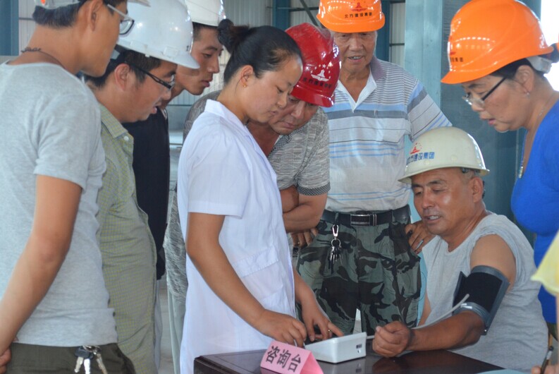 在施工現場(chǎng)設立了婚育新風(fēng)進(jìn)萬(wàn)家咨詢(xún)服務(wù)臺,由計生工作小組成員為鋼筋加工廠(chǎng)勞務(wù)工人提供計生政策、婦幼保健、更年期保健知識咨詢(xún)服務(wù),發(fā)放宣傳單、避孕藥具。計生工作小組志愿者免費為勞務(wù)公司所有勞務(wù)工人測量血壓,對個(gè)別血壓偏高的同志分別給予指導,讓他們在生活飲食上多注意自身健康、保健。