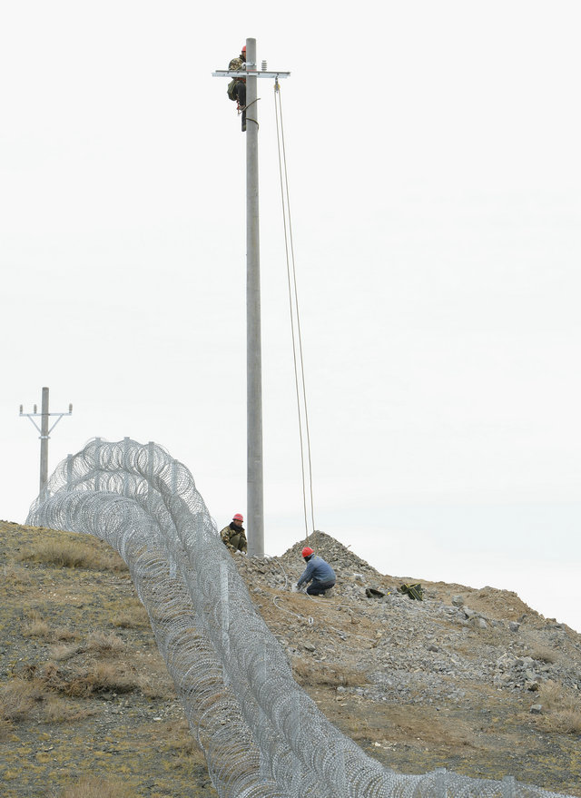 在137團阿吾斯奇牧場(chǎng),機聲轟鳴,只見(jiàn)三利公司水利施工部的挖掘機在山上挖山修路,華能公司的人員配合機械在立電線(xiàn)桿。