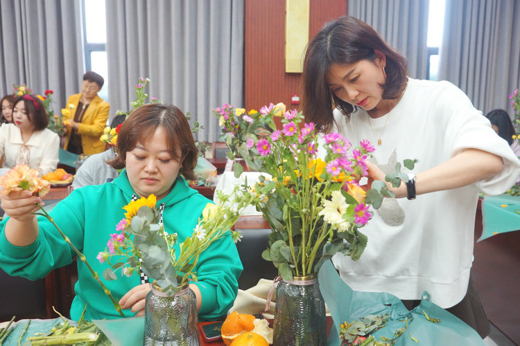 為迎接“三八”國際婦女節,搭建女員工展示風(fēng)采、溝通交流的平臺,彰顯新時(shí)代女員工積極、向上、健康的風(fēng)采,學(xué)習插花技藝的同時(shí),培養和提高女員工的審美情趣,進(jìn)一步促進(jìn)企業(yè)文化建設,3月7日下午,由中國建設銀行奎屯支行贊助,北方建設集團工會(huì )、婦聯(lián)聯(lián)合集團公司財務(wù)投融資管理部共同舉辦的“巾幗芳華·如花綻放” 花藝沙龍。集團總部各部室、各子分公司女職工代表93人參加了活動(dòng)。
