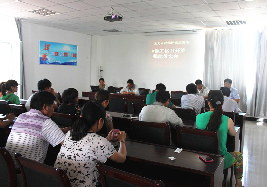 (葉兆英)7月2日中午,北方集團獨工區組織全體干群在四樓會(huì )議室召開(kāi)維穩動(dòng)員大會(huì )??傊?shū)記趙先斌落實(shí)北方集團安排,部署本公司維穩工作,成立了以班子成員為組長(cháng),各項目經(jīng)理管技人員為成員的應急小分隊。于7月1日當晚及時(shí)購回了應急服裝及所需設備,強調目前安全穩定工作的重要性,要求廣大業(yè)務(wù)干部時(shí)刻提高警惕,加強安全防范,做好值班交接記錄,保證24小時(shí)通信順暢,發(fā)現問(wèn)題及時(shí)向值班領(lǐng)導和當地公安部門(mén)上報,各項目班組做好施工現場(chǎng)安...